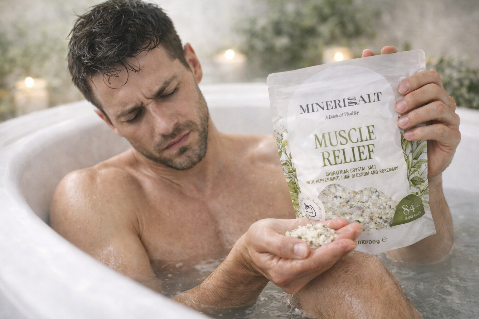 > Minerisalt Muscle Relief badzout wordt ondersteunend aanbevolen: